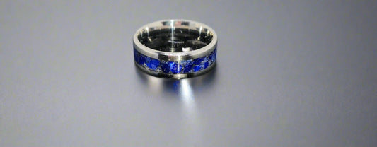 Lapis Lazuli Opal Glow Ring Steel Core Size U | Blue Matrix Ring UK