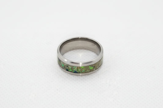 Aventurine Opal Glow Ring Steel Core Size S | Green Matrix Ring UK