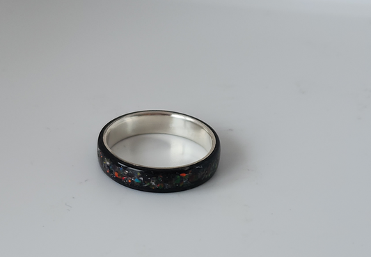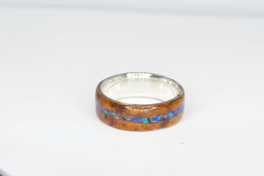 Dark Bentwood & Opal Channel Ring with Silver Core, Size ( U )